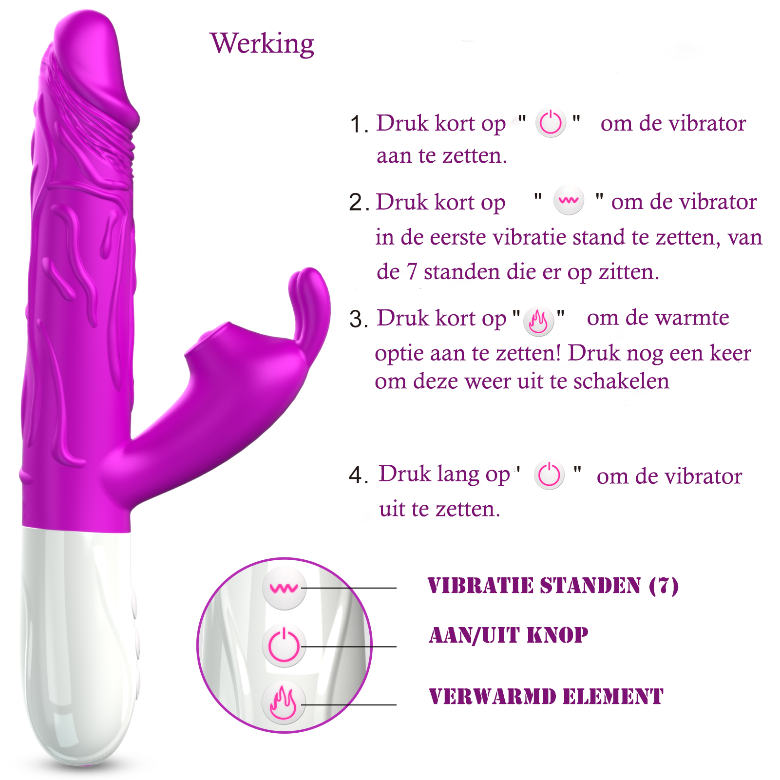 Het speeltje is waterbestendig maar dompel deze niet langdurig onder water. Voor het gebruik zorg dat de Vibrator goed schoon is om irritaties te voorkomen. Na gebruik is het aan te raden het speeltje schoon te maken met Toy Cleaner.